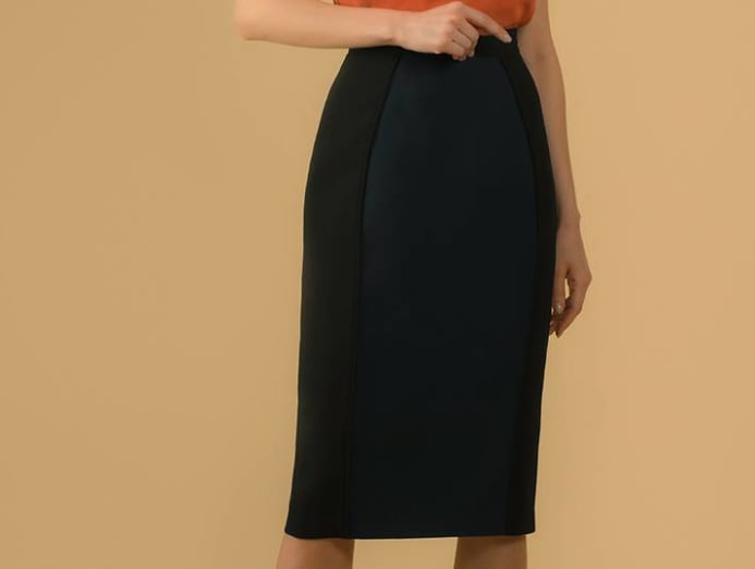 A pencil or tapered skirt volition help create that structured silhouette that is key to a smart and polished look. The textile that it'south fabricated out of is crucial, as it will directly influence the silhouette – even though this tailored bottom is designed to define your shape, it should exercise and then by creating straight lines that bending slightly inwards at your waist and knees instead of hugging your curves.